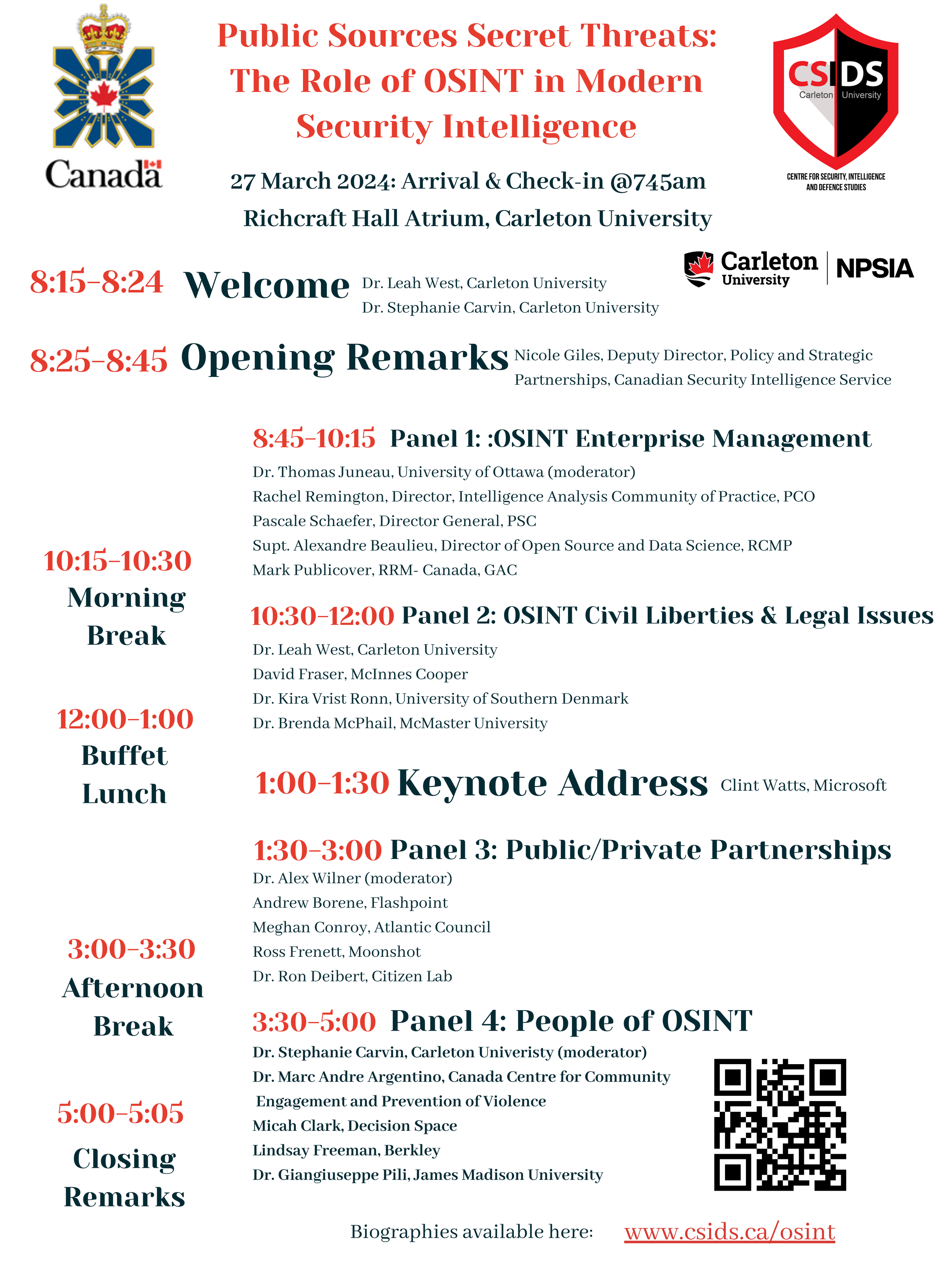 An unclassified workshop hosted by the Canadian Centre for Security, Intelligence and Defence Studies (CSIDS) and the Academic Outreach and Stakeholder Engagement (AOSE) Program at the Canadian Security Intelligence Service (CSIS)